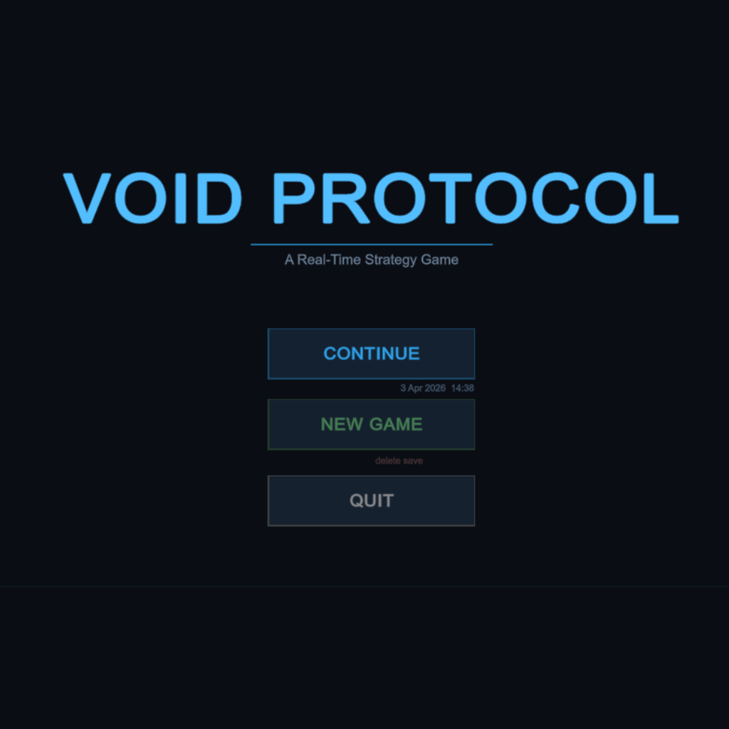 Void Protocol is a real-time strategy game built around fast decision-making, procedurally generated maps, and escalating enemy pressure.